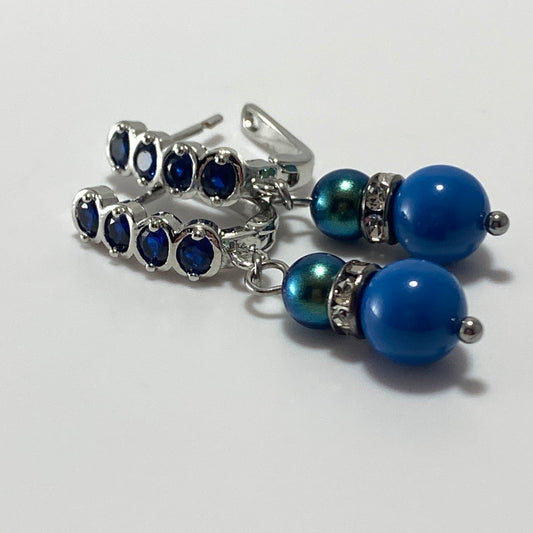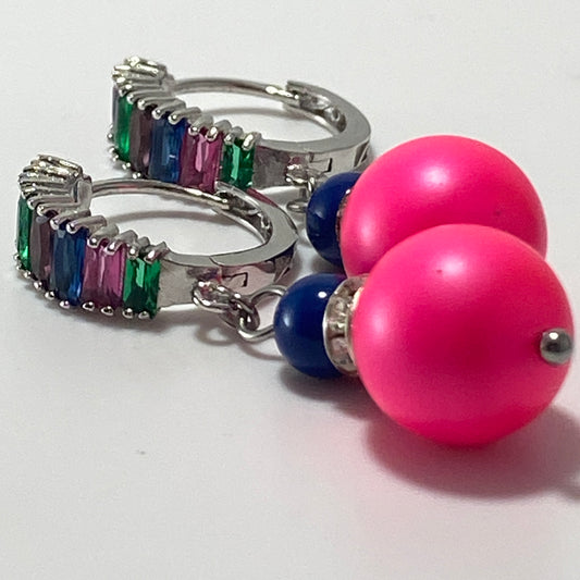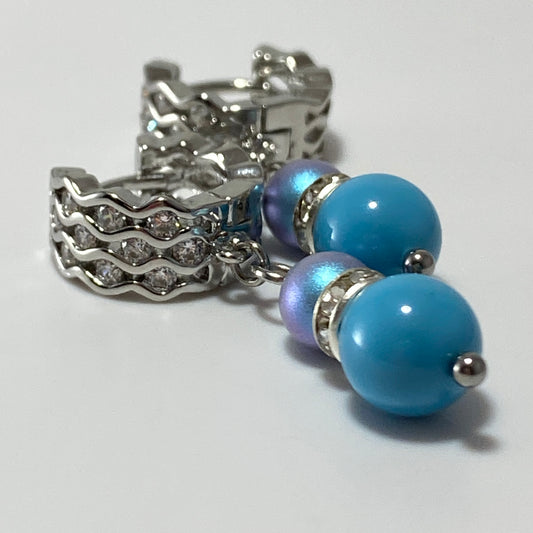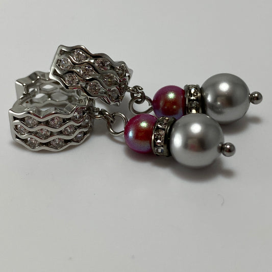 Pearls & Firepolished Beads Sterling CZ Hoop Earrings