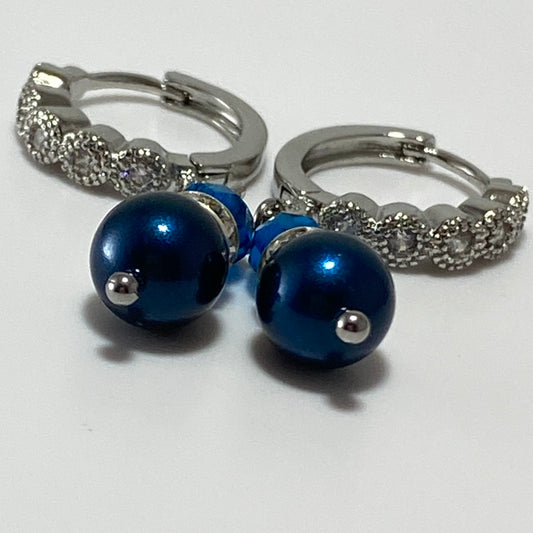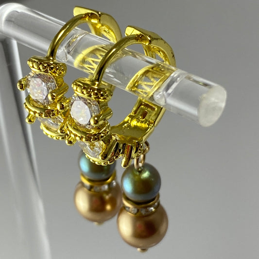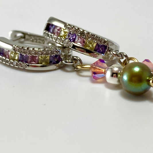 Crystals & Pearls Sterling CZ Hoop Earrings