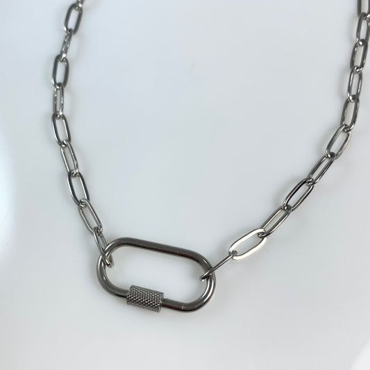 Oval Carabiner Heart, Initial Letter & Birthstone Charms on Paperclip Chain Necklace