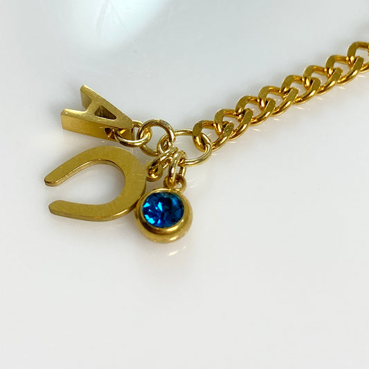 Gold Horseshoe Initial Letter Birthstone Purse Handbag Keychain