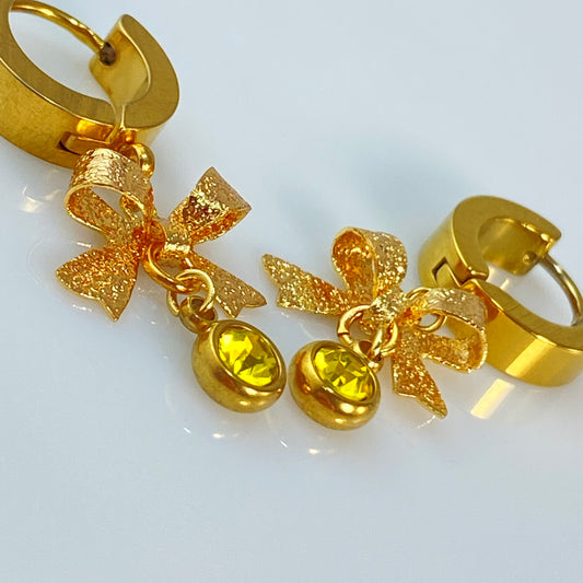 Gold Bows & Birthstone Huggie Hoop Earrings
