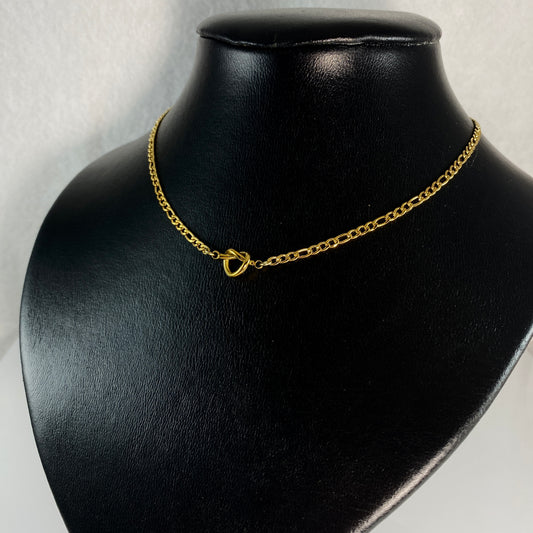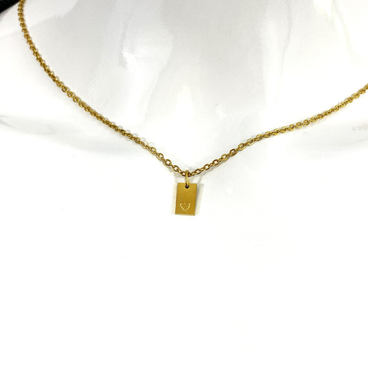 Tiny Rectangle Heart Stamp Cable Chain Necklace