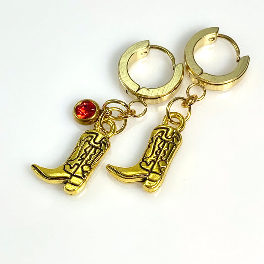 Cowgirl Boots & Birthstone Huggie Hoop Earrings