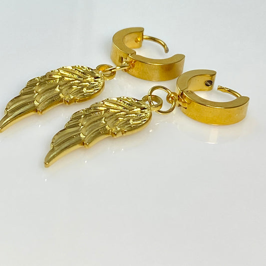 Gold Wing, Letter - Initial & Birthstone on a Heart Carabiner & Figaro Chain Necklace