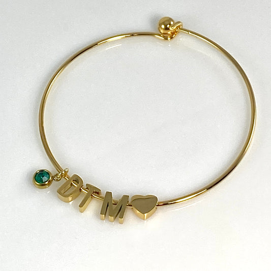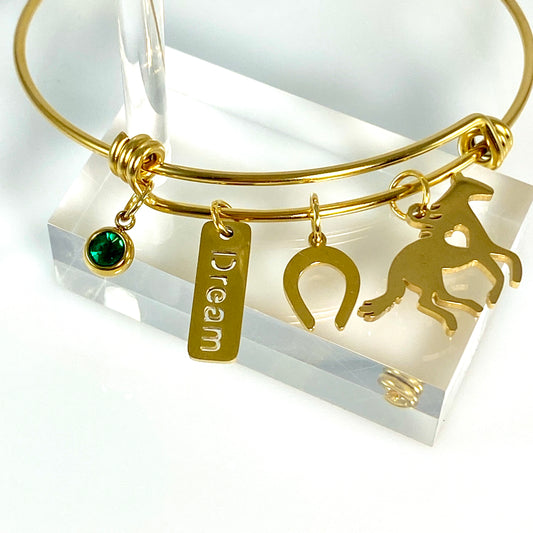 Gold Birthstone & Horse Adjustable Bangle Bracelet
