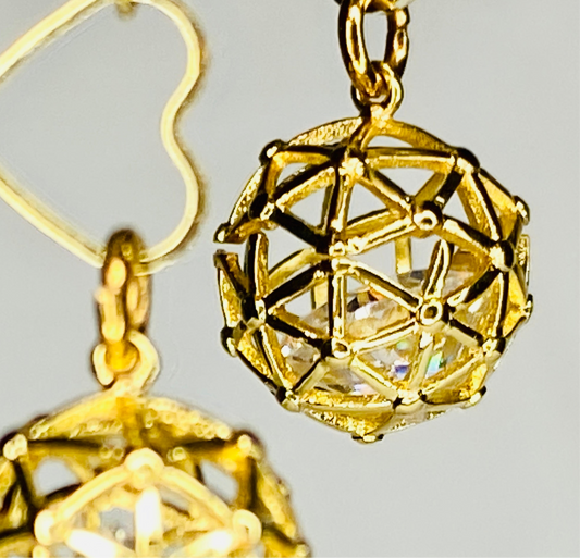 Boucles d'oreilles créoles en laiton plaqué or 24 carats avec boules en pierre de zircone cubique