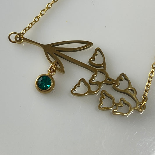 Bracelet en acier inoxydable avec fleur de naissance et pierre de naissance à deux trous en or 18 carats sur chaîne en câble