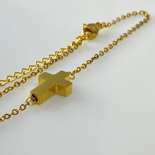 Bracelet à maillons croisés en or 18 carats sur chaîne en acier inoxydable