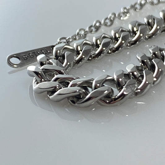 Bracelet à maillons en argent et acier inoxydable Miami Cuban