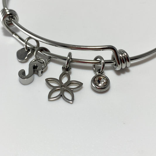 Bracelet en argent avec pierre de naissance et lettre en acier inoxydable