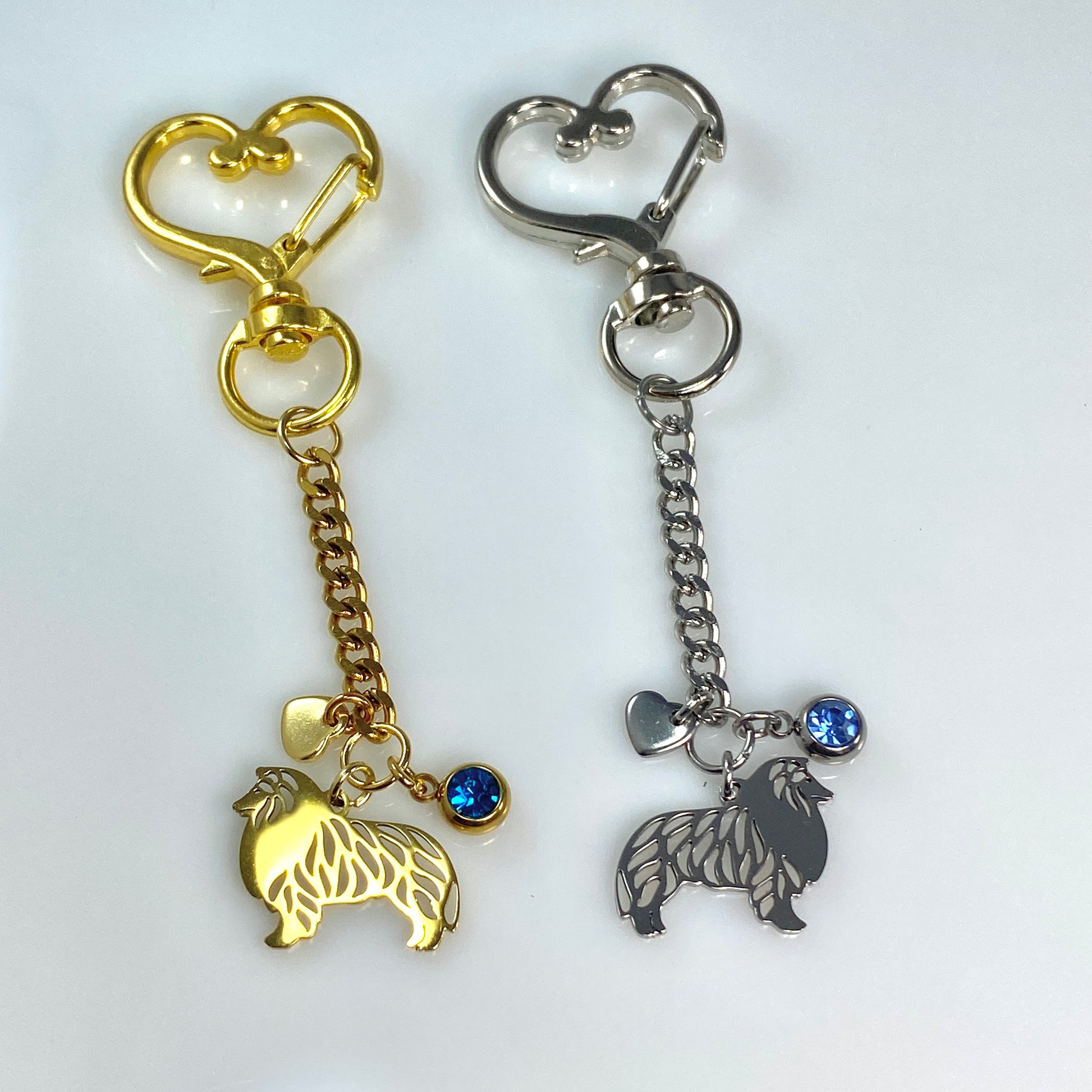 Collie Dog & Birthstone on Heart Keychain