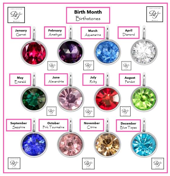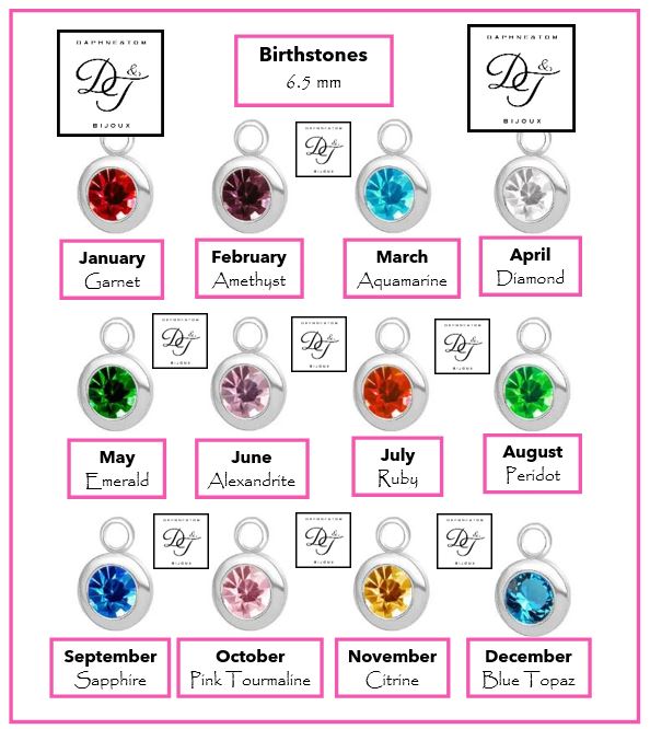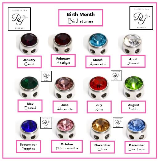 Birthstones are not a new phenomenon. Charm bracelets and necklaces were adorned with pretty, sparkling semiprecious stones. Most months have two semi-precious and one precious stone associated with it. 200 years ago, your "suitor" may have given you a "Promise ring" with his birthstone as a way to let others know that you were not free to date. Today, you can choose whose birthstone to wear. We can make a custom piece that has 4 or 5 birthstones for your family or favourite 4 legged companion.