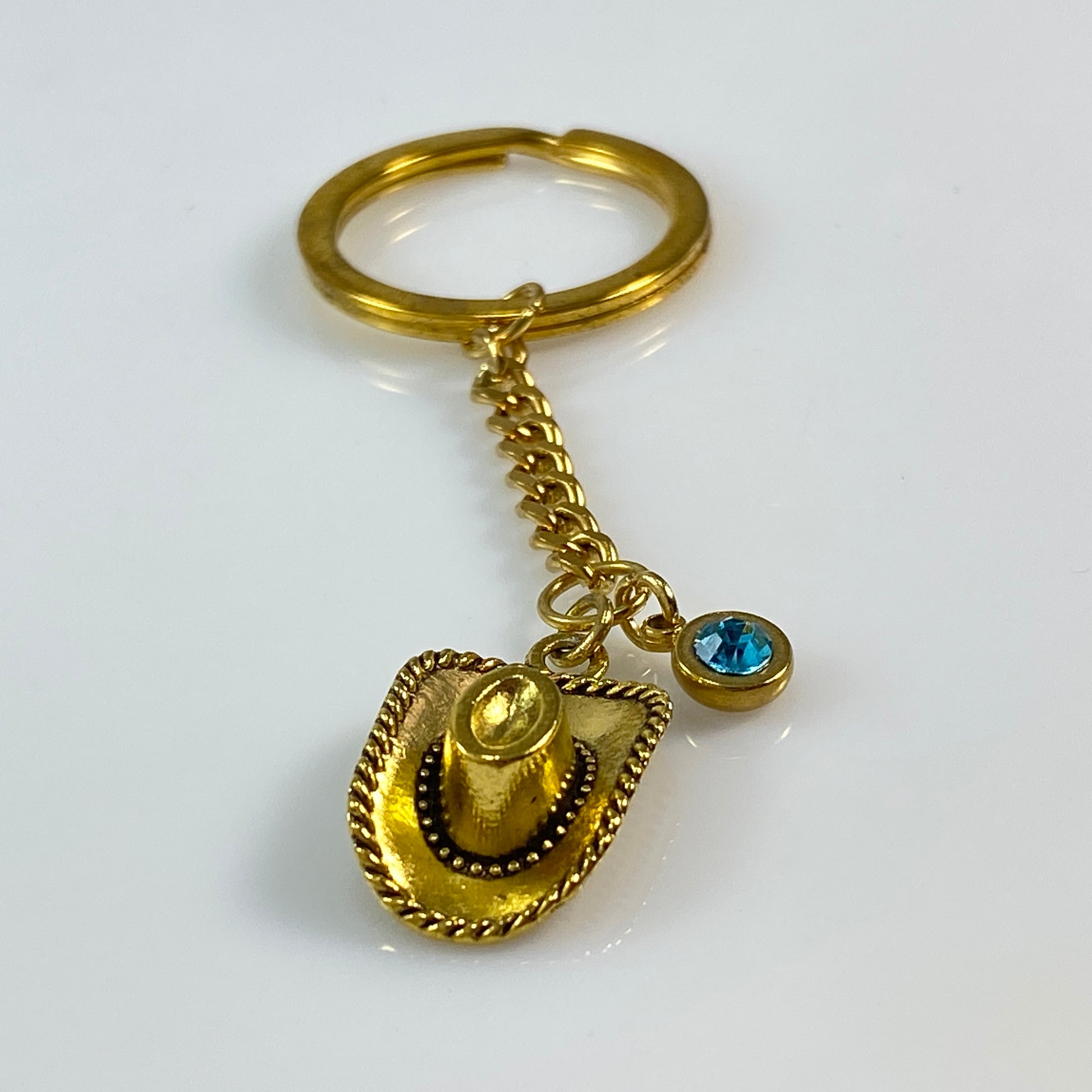 Measurements: Gold Hat 32x15 mm; 6.5 mm birthstones; keychain 30 mm