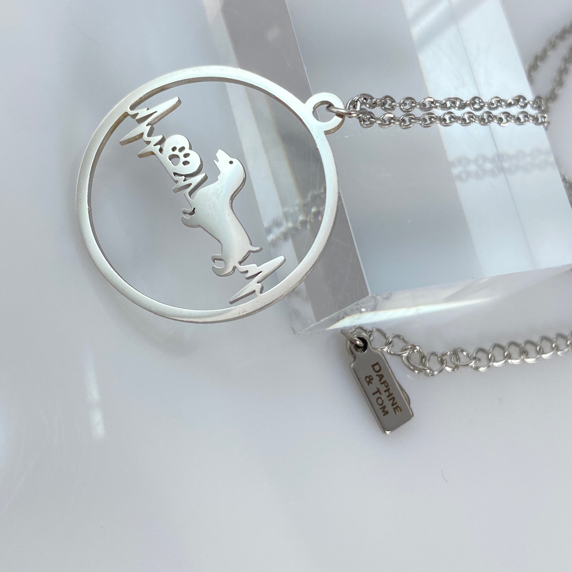 Dachshund Dog Heartbeat Pendant & Birthstone Cable Chain Necklace