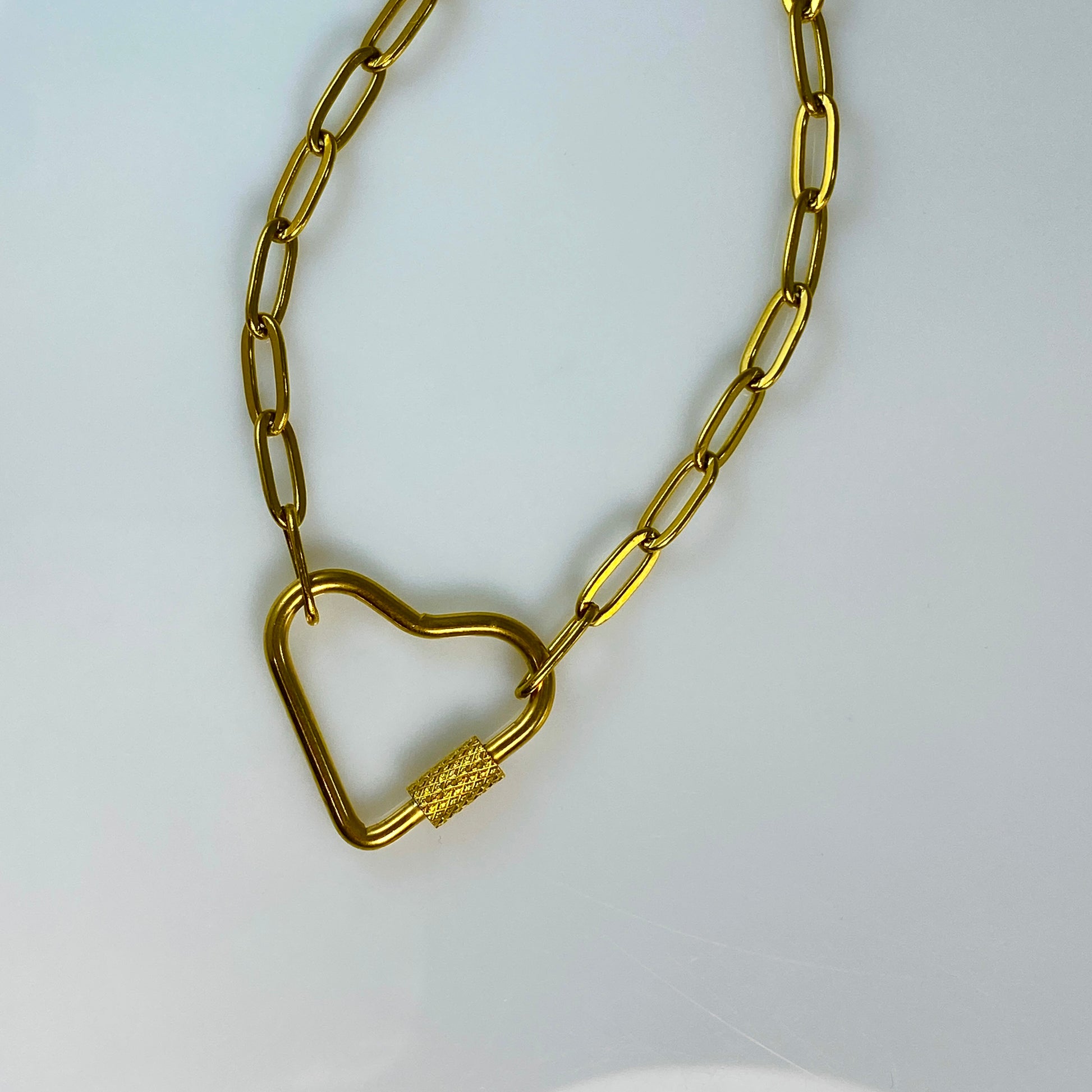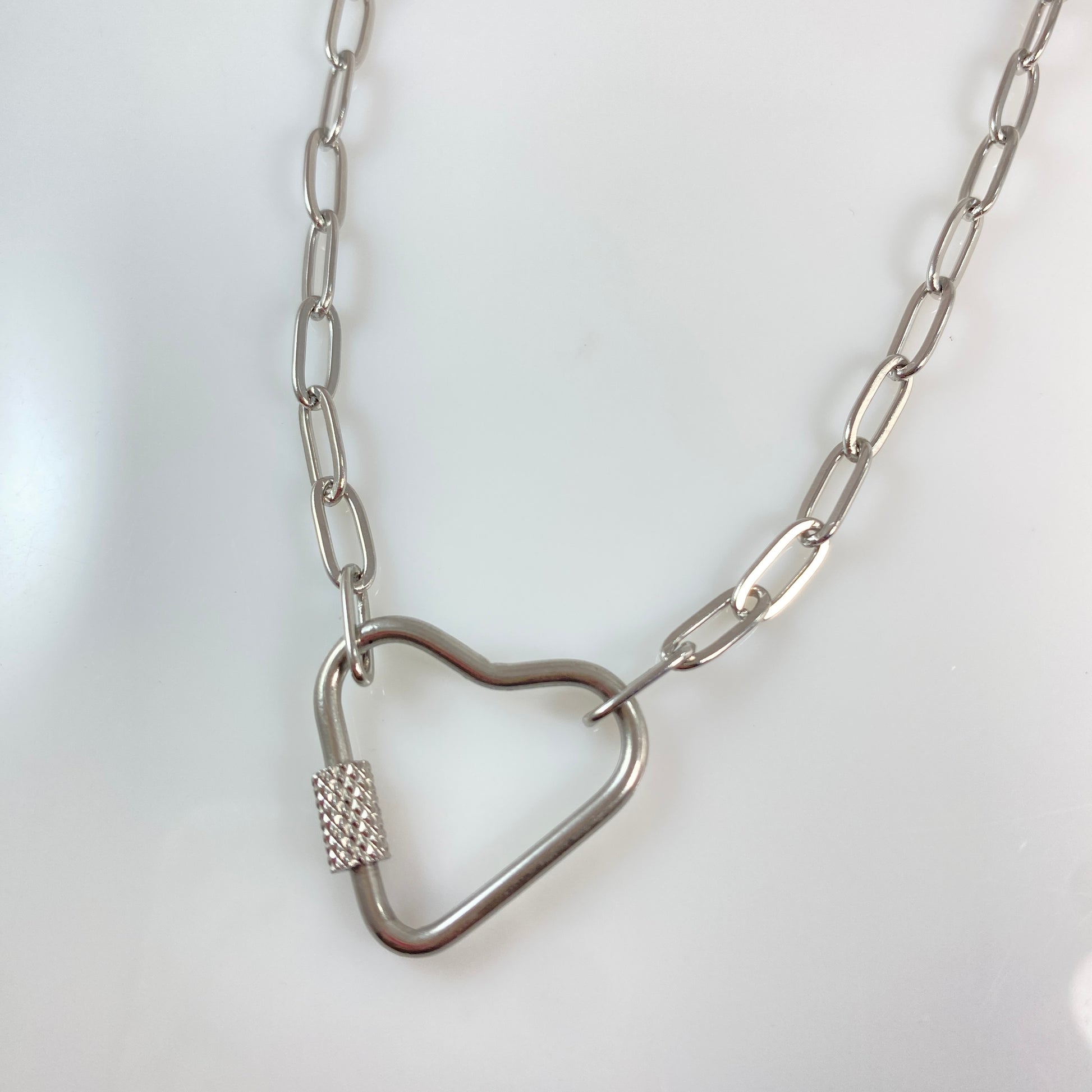 Heart Carabiner on Paperclip Chain Necklace